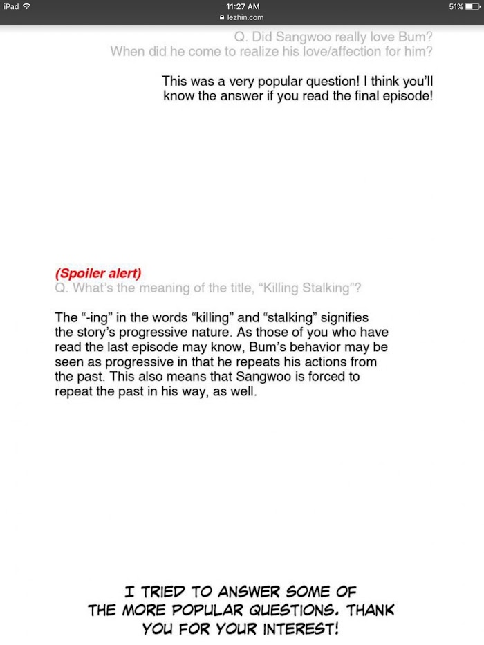 Chapter 19.7 : Killing Stalking Fan Event Pt. 2