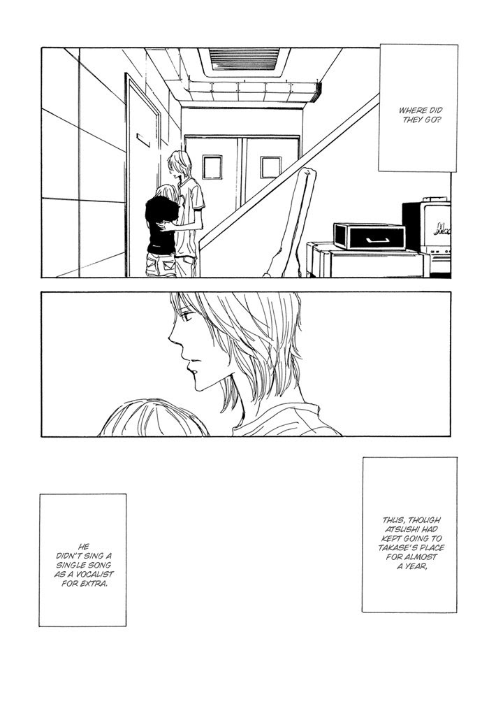 Nakano Atsushi, first-year high school student who didn't open his heart to anybody except his much-loved older sister, even while thinking of putting together a band, isolated himself. His older sister, worried for the obstinate Atsushi, got the cooperation of her fellow student Takase Yuuichi. The sound of the guitar played by Takase, who takes part in an indie band, is in tune with Atsushi's heart and he was made prisoner by Takase's invite "I'd like you to sing together with me", just like a love confession... With a lot of material drawn for the occasion, the wandering of a hazardous love. [b][u]Polish / Polski:[/u][/b] [spoiler]Nakano Atsushi, pierwszolicealista, z całego serca pragnie założyć zespół. Jednak dla introwertyka, otwierającego się jedynie na starszą siostrę, nie jest to łatwe. Z pomocą spieszy znajomy siostry, Takase Yuuichi. Zarówno dźwięki gitary Takase, jak i słowa: "Chciałbym, żebyś ze mną śpiewał", brzmiące jak miłosne wyznanie, pochwyciły serce Atsushiego, wciągając go coraz głębiej w toksyczną znajomość.