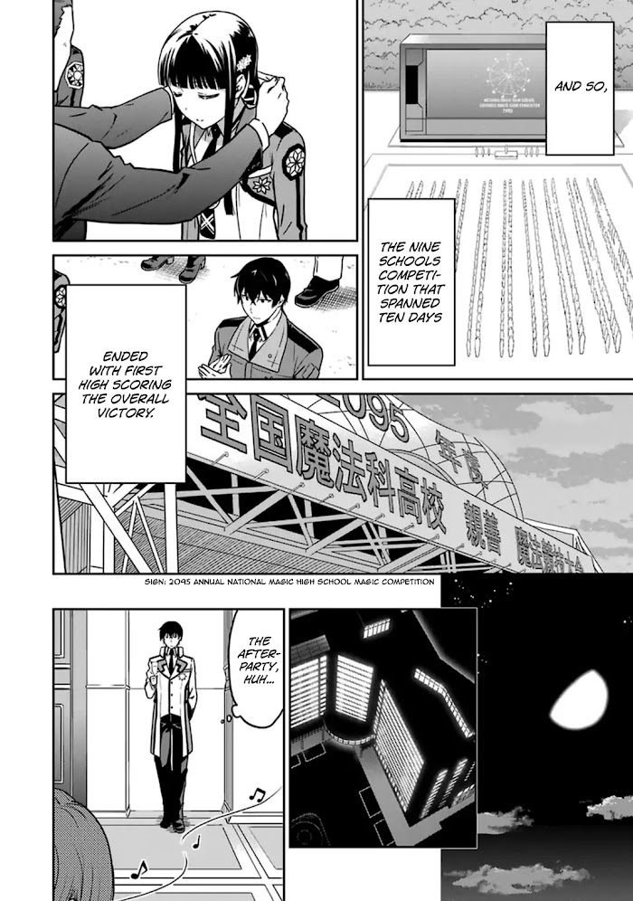 Manga adaptation of the 2nd arc of the Mahouka Koukou no Rettousei series. There are currently nine magic high schools affiliated with the National University of Magic throughout the country. In an effort to address the current limitations, magic high schools are trained to the highest degree, while they are trying to increase the limited pool of instructors. For that purpose, a measure was put in place so as to fuel the student's aspirations through competitions between the 9 magic schools. The largest of these is the summer Nine Schools Competition. It is a nationwide magic high school magic tournament. Every year a selection of magic high school students from across the country meet, putting their pride on the line, and unfold a story of frustration and glory. With a huge crowd including not only government officials and those interested in magic but also businesses, overseas companies, researchers and scouts, this is the greatest stage for magic high school students to shine. This year too, the curtains of that momentous event will be raised again.