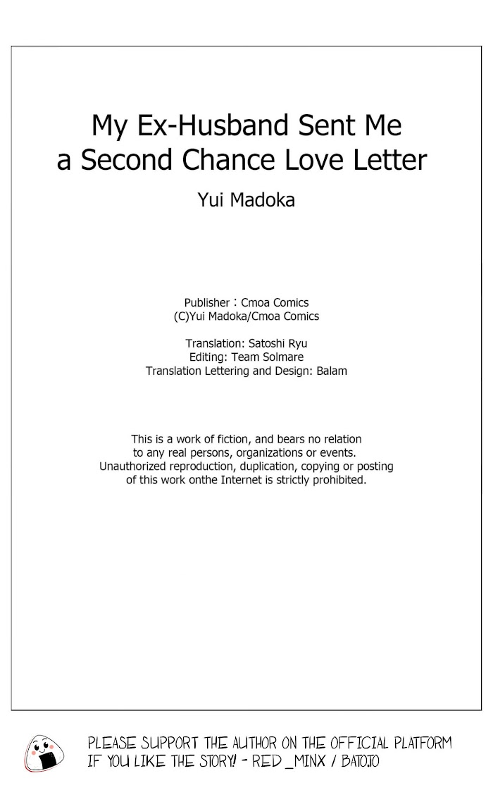 Just three months into Sayuki's marriage, tragedy struck. When she comes home early one day, she hears her husband and another woman speaking sweet nothings to each other in their bedroom. Without a moment's hesitation, Sayuki files for divorce and decides to have a fresh start, giving up on love and marriage. A few years pass and a guy at work starts talking her up. But before she has time to worry about him, she begins receiving love poems from her ex-husband! What happened, and why is he suddenly trying to act all romantic?!