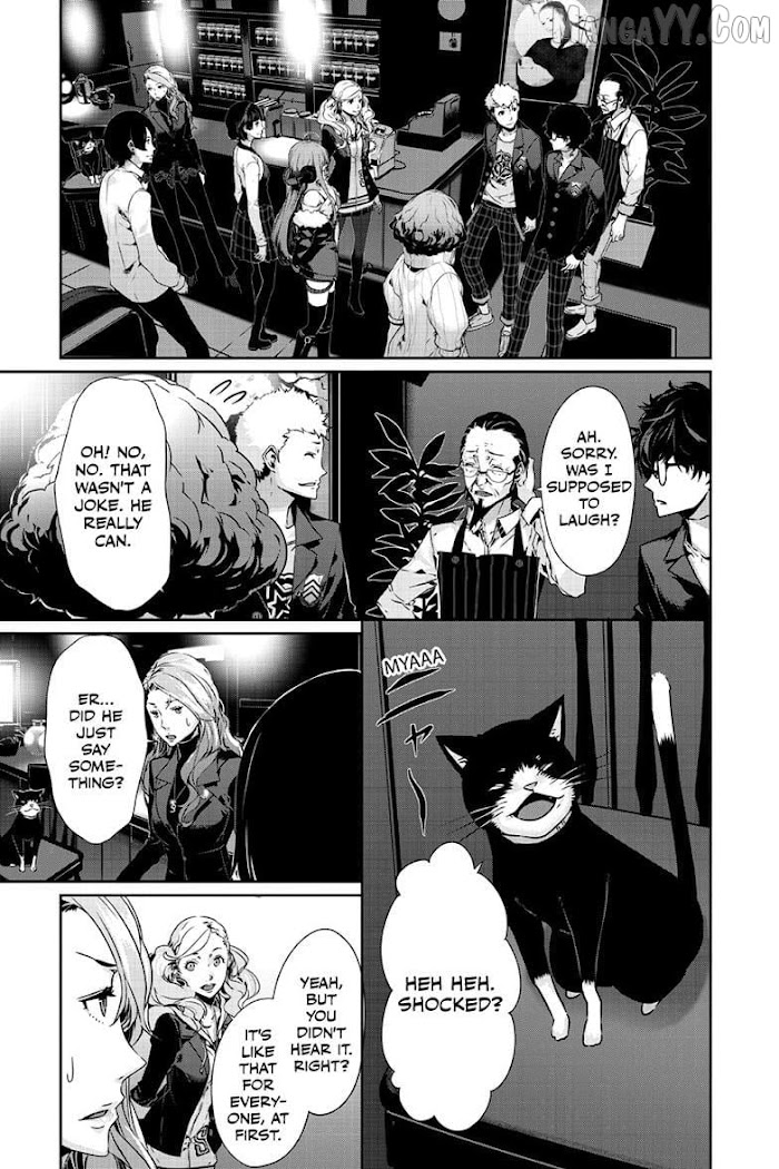 The story focuses on the 16-year-old protagonist, Akira Kurusu, who got transferred to Shujin High School in Tokyo after he was sued by a man with political connection for a non-existent violence when Akira saved a woman from being molested by the man, leading to his probation. Arriving in Tokyo, he finds a mysterious app got installed into his phone that enables him to enter another world formed from corrupt hearts of adults where he awakens his power called Persona. During his times there, he is joined by two fellow students Ryuuji Sakamoto and Ann Takamaki, and a shape-shifting cat-like creature known as Morgana. Feeling suppressed by their environment, the four form a group known as the "Phantom Thieves of Heart" to steal corrupt hearts of adults and reform society.