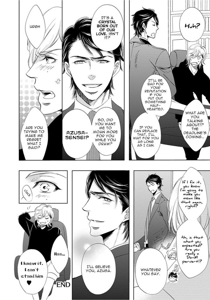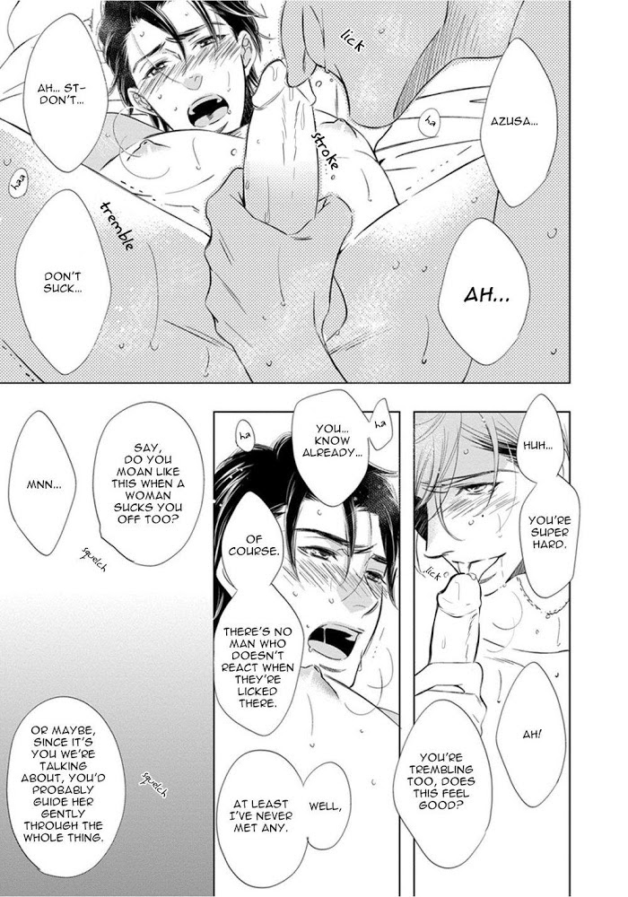 From Exiled Rebels Scans:Always-surrounded-by-friends Ryuunosuke and lone wolf Kagetora are leaders of opposing teams and they have a cat-and-dog relationship. One day, they end up doing erotic things– "This can't be. I'm sharing a secret with this guy." There are also plans to move far away, and things get complicated. As these two who cannot seem to grow up consider their friends, hometown, family and their feelings for each other, they take their first clumsy steps into love.This volume also contains the story of adult love between a younger manga artist and his Do-M editor! Even though his body was held captive "for the sake of producing ero manga", the manga artist discovers a pleasure switch that even he didn't know about…