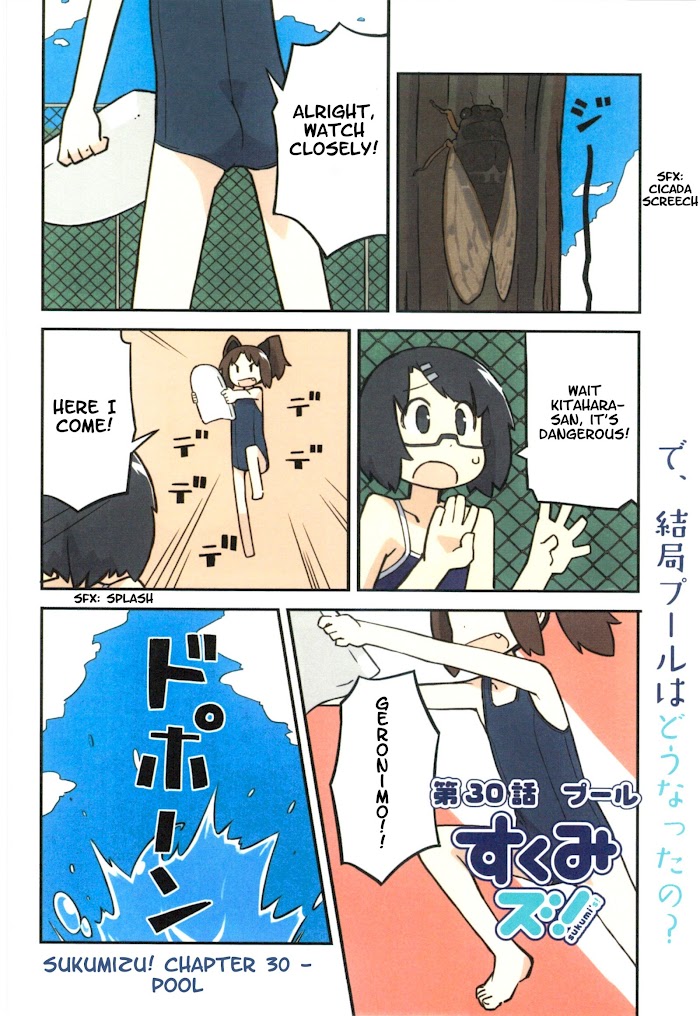 A 4-koma illustrating the lives of cute girls doing cute things in school swimsuits.
