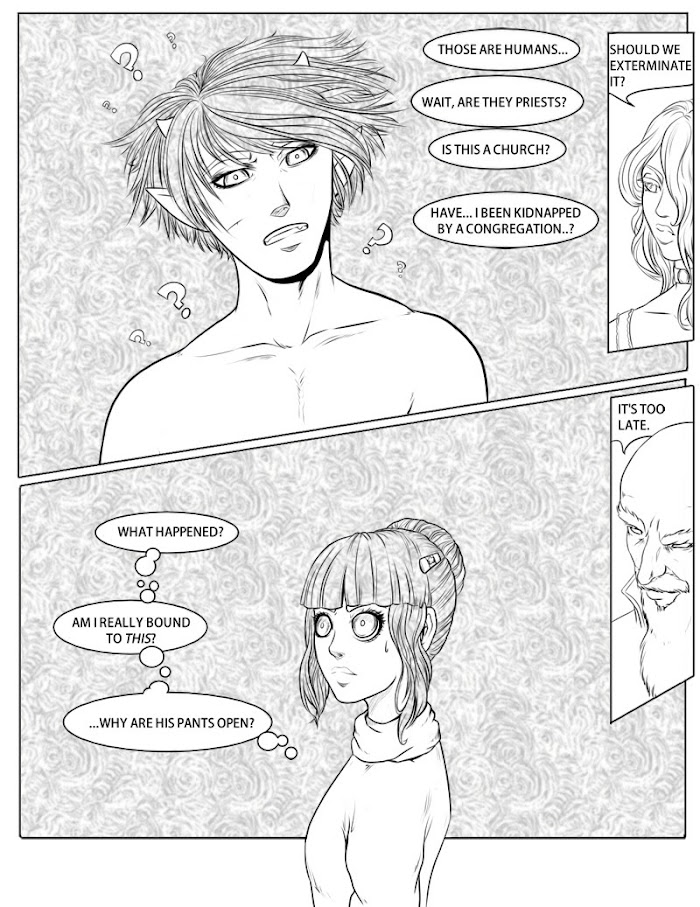 Ati is a quaint young priestess who's only just reached Summoner status in the Templars, a group of religious crusaders who fight demonic forces. During her ritual to summon her angel companion, she accidentally ends up summoning the demon, Iro. The two are now bound, but at what cost? Will Ori fight his own kind, and will Ati find what it takes to control and tame a wild demon?