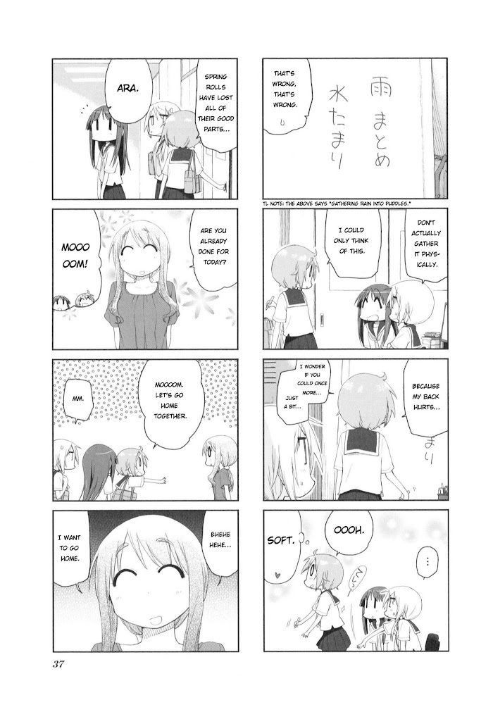 This 4-koma style manga features 3 school girls as they hang out and chat. Friendly, clueless Yukari, enthusiastic, childish Yuzuko, and the more level-headed Yui hang out and talk about various subjects, like ketchup and mayonnaise, hands, the sun and more. (Source: MangaHelpers)